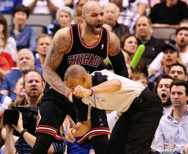当然主动挑起事端的也就是以上两位了,至于其他几个名场面里,13年公牛对阵小牛时,卡洛斯布泽尔在篮下面对诺维茨基打出2+1后情不自禁做出了挥拳庆祝的动作,结果没想到裁判就在身边,这一拳结结实实的打到了裁判的腹部,不过好在裁判也意识到布泽尔不是故意,所以当时并没有对布泽尔做出处罚。还有乔尔安东尼对阵火箭队和姚明争球时一肘子也打到了裁判的头部,当时裁判还特意回放了无数遍,最终确定安东尼不是有意为之后才不得不苦吞血水自认倒霉!